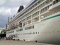 1990年建造の高級クルーズシップ“クリスタル・ハーモニー”は、総トン数49,400トン、全長241m、全幅29.6m、速力23ノットで、12層のデッキを持つ。乗客定員940名、乗組員545人という巨船。