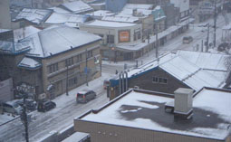 暖冬の影響で、今年になって降雪がなく道路にも雪がないという、雪国小樽にとっても、珍しい正月風景が広がっていたが、これも8日から9日にかけての大雪で、あっという間に本格的な雪国に戻ることになる。気温も下がっているため、細かいサラサラの雪が舞っており、市民は、早朝から久し振りの雪投げに追われることになりそうだ。