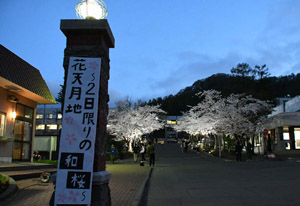 小樽商科大学(緑3)の桜の開花に合わせて、同大の地域活性化サークル小樽笑店(尾崎航代表)が、「花天月地~2日限りの和桜」と題して、桜の並木道等のライトアップを実施した。