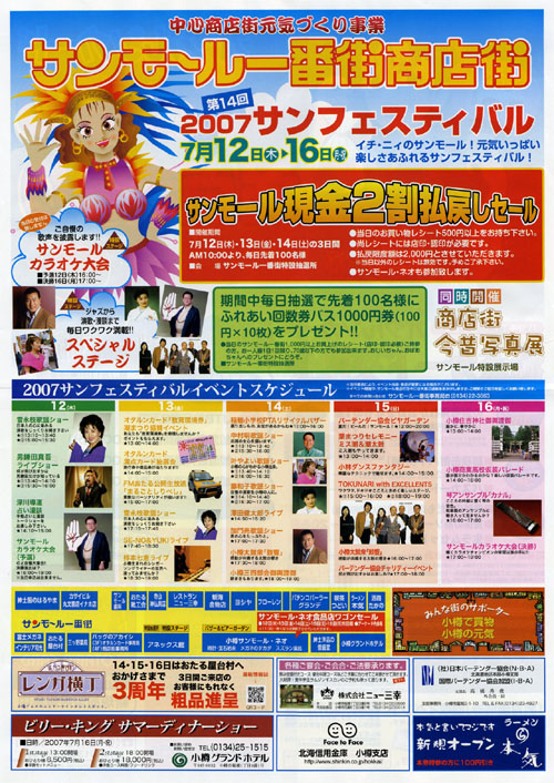 イチ・ニィのサンモール!元気いっぱい楽しさあふれる「2007サンフェスティバル」が、7月12日(木)から16日(月・祝)までの4日間、サンモール一番街商店街(稲穂1)で開催される。