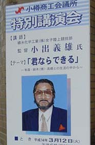 これまで商工会議所は、例年ホテルを利用して、経済界向けの講演会を開いていたが、人気が今一つで、今回は一般の人をも対象として、小出監督に白羽の矢を立てたところ、大人気となったもの。『君ならできる』のテーマで行われる小出監督の特別講演会は、小樽市民センター「マリンホール」で、3月12日(火)午後6時から。