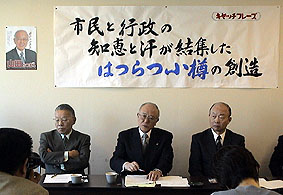 2期目の再選を目指す、現職の山田勝麿市長は、15日(火)10:30より、駅前第1ビル4Fで、“山田市政の公約”の発表を行った。『市民と行政の知恵と汗が結集した「はつらつ小樽」の創造』のキャッチフレーズのもと、まちづくりの基本目標5項目を挙げた。