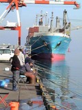 11月10日(水)の小樽港の堺町ふ頭には、ソーラス条約による立入禁止区域で狭められた遊漁地区で、釣客が糸を垂らしていた。