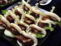 4000円を支払った参加者は「立席で人が多くてあまり食べられない」と言いながらも、手にした皿には料理がいっぱい盛られ、パクパクと大盛な食欲を見せていた。