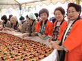 長さ7m20cm、幅1m80cmの楕円形の巨大な寿し桶には、米210kg・海苔1kg・かんぴょう15kg・しいたけ10kg・そぼろ10kgなどで作られた、さくら吹雪・千人寿司が、1時間足らずで見事に完成した。
