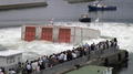 目前で見られた珍しいケーソン進水に、「近くで働いてる友人に、このケーソン進水作業のことを教えてもらって、連れて来てもらいました。すごい迫力でした。一瞬のうちに終ってしまった」、「ネットでケーソン進水作業の公開のことは知っていた。前から来てみたかった。目の前で見てみたら感激した。波がすごかった」、「弟に引っ張られて来たけど、こんなにすごいとは思わなかった。波が本当にすごく、迫力があって感動しました。また、すぐ見られないと思うと寂しい気がする。天気も中止にならないほどで良かった」と、その大迫力に感激していた。