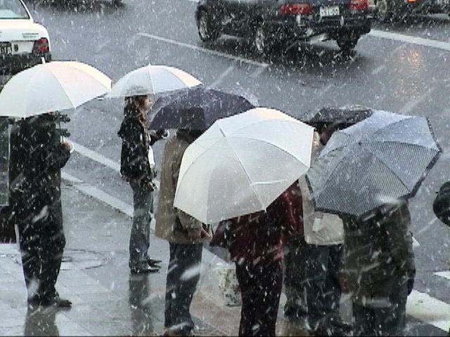 雪の降りつける小樽運河では、観光客も少なく傘を差しながら記念撮影をしていたが、雪と寒さにびっくりの様子で、早々に立ち去っていた。JR小樽駅前でも、初雪を防ぐ傘の列が並び、足早に横断歩道を渡っていた。