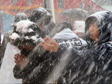 神社正面入口にある御影石の大鳥居脇の境内広場に用意された会場では、正月飾りや注連縄(しめなわ)、お守り、神札等が、次々に“どんど焼き”に投げ入れられた。折から吹き付ける大雪に、どんどの火は高く燃え上がった。