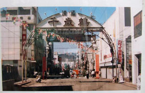 大きなアーケードを持つ市内中心商店街のサンモール一番街(稲穂1)で、同商店街の昔がひと目で分かる今昔写真展が、2月8日(木)から、雪あかりの路に合わせて始まった。