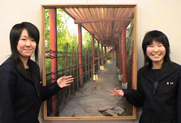 1年生の瀧川純(16)さんは、桜や回廊、マジシャン、デッサンなどを出展。「先輩には、回廊を描く時に手前と奥の遠近感を出すための技術などを教わりました。最初と比べて大分良くなりました。先輩のアドバイスによって上達したと思います」とニッコリ。