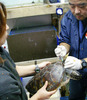 懸命のリハビリ治療を続ける「チームウラシマ」の努力が実って、この太郎君が、竜宮城のある豊かな海に、帰る日は来るのだろうか。(写真提供:おたる水族館)
