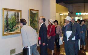 セレモニーに参加した関係者や市民約80人は、記念ホールや2階特別展ホールに飾られている小樽や札幌、石狩などの雄大な景色が描かれた作品をじっくり見渡した。中村善策が対話するように描いたと言われる豊かな森林や水辺の風景画を見つめ、その魅力を感じていた。