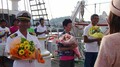 来賓の山田勝麿市長は、「ようこそ小樽にいらっしゃいました。最終目的地である小樽に無事たどり着きました。小樽をはじめ、函館、札幌など、榎本のゆかりの地で様々なイベントが行われている」と挨拶。ミスおたるや市内小学生たちは、「あこがれ」のキャプテン、乗船した榎本武揚の子孫・大沢不二子さんらに花束を贈呈した。