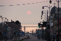 小樽では、5月上旬と8月上旬の期間限定で、JR小樽駅前から一直線に日の出が上る珍しい光景が見られる。