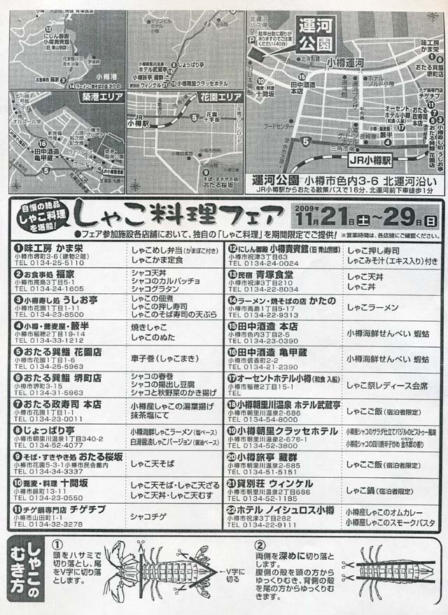 第2回「おたる産 しゃこ祭」が、11月21日(土)・22日(日)10:00~15:00の2日間、運河公園(色内3)で開催される。