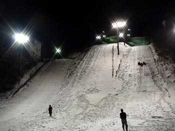 ナイター練習初日は、天候も穏やかで、ジャンプ台からは市街地の夜景を眺めることが出来た。子供たちは、「行きます」。「お願いします」と、元気良い合図を送り、小樽市街を眼下に次々に羽ばたいた。