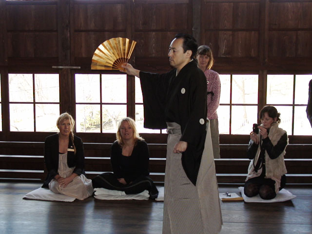 小樽市公会堂併設の旧岡崎家能舞台(花園5)で、4月26日(月)、スウェーデンから来た「国際ロータリー第2360地区 」の研究グループが能の基本を学び、日本の伝統文化を楽しんだ。