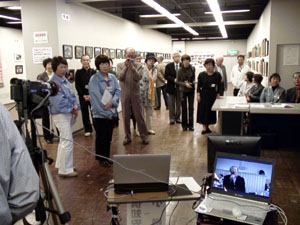 「小樽しりべしシニアネット」(古田重雄会長)は、5月21日(金)、市立小樽美術館(色内1)で開催中の美術展で、インターネット電話サービスSkypeを使って兄弟の札幌・倶知安シニアネットと通信し、小樽での活動をPRした。