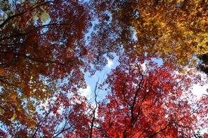 頭上には万華鏡のような光景です。色とりどりの葉っぱが空をふさいでいまし た。