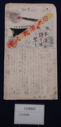 日誌には、「今朝、市原先生が日本とアメリカが戦争をした事を話して下さった。こんどこそはほんたうに敵機が何時我等の上空にその姿を現すかも知れない。我々が此時に生れ命はせたことはとても幸福なことであると思ふ」(12月8日)。