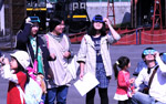 8日(土)は、晴天に恵まれ、会場には太陽を見ようと40名ほどの人が集まった。大鐘卓哉学芸員から、太陽専用メガネ(有害な光を遮ってくれる)が配られ、「直接見たり、黒い下敷やサングラスで見ることもしないように」との注意があった。参加者は、めいめいにメガネで太陽を見てから、望遠鏡を取り囲んでいた。
