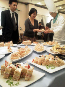 11月1日(火)19:00から、ルタオ本店(堺町7)で、観光関係者やメディア向けの試食会が開催された。参加者は、各店舗のパティシエが試行錯誤し、創り上げたオリジナルシューを堪能。「各店それぞれの特徴が出ている。嬉しい企画」と楽しんでいた。