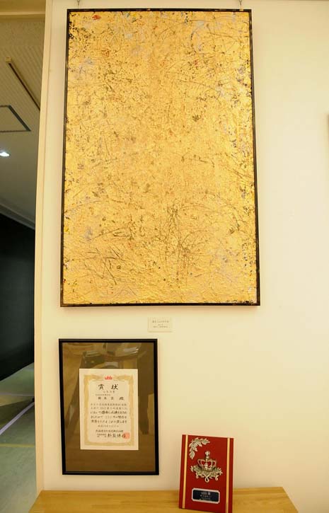 UHB賞を受賞した鈴木君は、「アクリル絵具を重ねて書いたもので、いろいろな心の中に抱えていた気持ちを表した作品。初めての受賞で嬉しかった。テーブルや椅子などの木工品を作るのが好き」と話した。