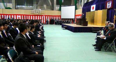 部局長・学科長が紹介され、同窓会紹介の後、商大グリークラブより、校歌と若人逍遥の歌が披露されて、式を終えた。