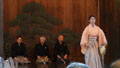 「橋弁慶」で牛若丸を演じる若竹小学校3年生の田中謡子さんをモデルに、能装束着付けが紹介された。最後に半能「橋弁慶」では、弁慶を三ツ江氏、牛若丸を田中謡子さんが演じ、日々の練習の成果が発揮され、 多くの市民が市民能を楽しんでいた。