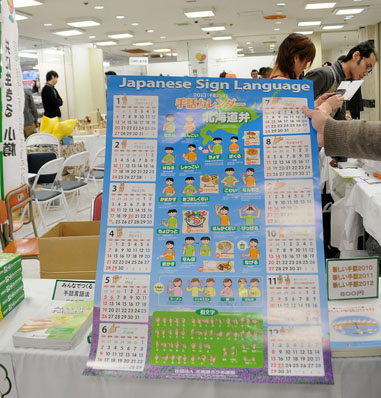 小樽ろうあ協会は、北海道弁が乗っている手話カレンダー、手話の本を販売。各団体の活動も紹介している。