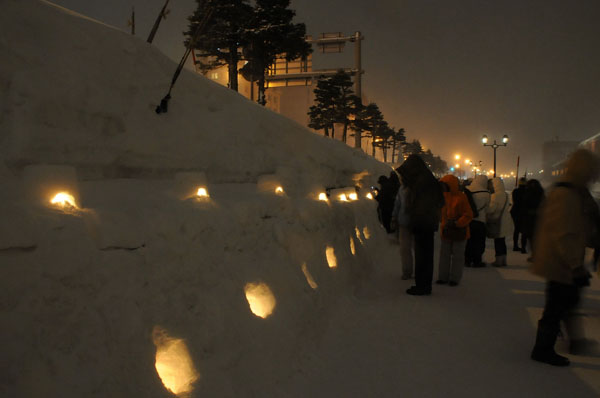 yukiakari15.jpg 厳冬の北の街に幻想的な世界を繰り広げる「第15回小樽雪あかりの路」が、2月8日(金)17:00から17日(日)の10日間の日程で開かれた。運河会場や手宮線会場など各会場には、素朴なロウソクの灯が煌めき始めた。