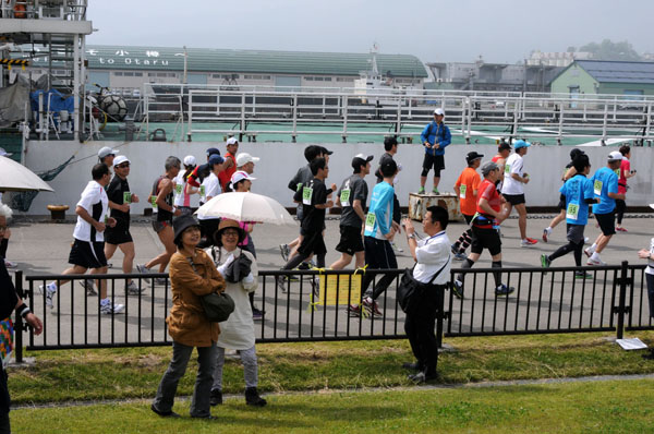沿道には、知人や同僚、家族らが見守り、「がんばれ!」と声援を贈っていた。ゴール付近には、小樽限定ご当地キャラクター運がっぱも応援に駆けつけ、記念撮影に応じていた。