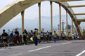 朝から霧が立ち込める中、会場周辺では、ウオーミングアップする選手の姿があちらこちらで見られた。受付を済ませ、ゼッケンをつけた選手が、スタート時間が近くなるにつれ会場に集まった。コース及び会場周辺道路では、通行止めなどの交通規制が行われた。