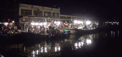 雨模様のあいにくの天候となった8月18日(日)20:00から、高島漁港(高島3)で、お盆恒例の高島漁港納涼花火大会が開催された。