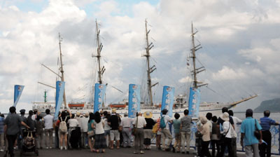 優美な帆船は市民や観光客に人気が高く、停泊中は普段閉鎖中のゲートが開放され、多くのファンが船体近くで見物することができた。出港時間など市への問合せなども多く、見送り客350名が同埠頭や向い側の埠頭から出港を見守った。