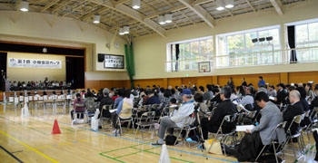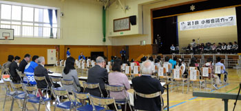 「音読」の成果を発表する第1回音読カップが、10月27日(日)9:10から16:00まで、小樽市立花園小学校(花園5)体育館で開かれ、市内26校から各校の代表77名が参加した。