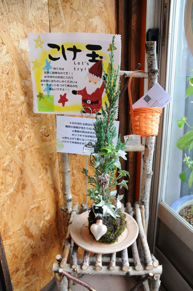 アクリル毛糸でひつじの形に編んだエコたわしや、こけしのストラップ、ビーズで作った葡萄やどんぐりのペンダント、小物入れ、バックなど丁寧にひとつひとつ心を込めて手作りされた雑貨。クリスマスも近づき、毛糸で編んだツリーやこけ玉のツリーなど、これからの季節に合わせた商品も楽しい。