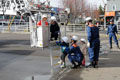 災害救護車では、港に転落した車などを引き上げるために潜水したり、救助する時に出動すると説明があり、使用する潜水服やヘルメット・酸素ボンベに実際に触れ、ヘルメットを被ったり、多くの園児が興味を示していた。