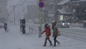 このため、気温も上がらず、1日中、氷点下の寒い真冬日となり、午後には猛吹雪が襲来し、街のいたる所を白一色に変えた。