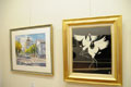 自分の得意な分野の水彩・油彩・アクリル画などの中から、風景や同教室の指導の下完成した自信作が、会場を1周するように並べられている。