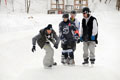 コース周辺には、興味を示したスキーヤーやスノーボーダーが取り囲み、演技に注目した。フェイスブックで情報を知ったアイスホッケー経験者の男性3名が挑戦し、デモンストレーターの演技を手本に楽しんでいた。