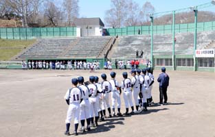 野球指導に入る前に、各校で行われているウォーミングアップで体を温めた後、OBや信金職員によるキャッチボールの指導があった。春の暖かい日差しを浴びた球場に、元気な野球少年の声が響いていた。