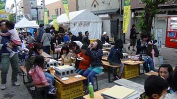 14:30からは、商大生による花銀路上縁日も開催されていて、ポップコーンやわたあめ、ヨーヨー釣りで、子ども達が存分に祭りを楽しんでいた。