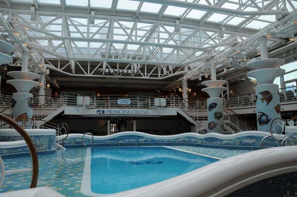 プールは4ヶ所、サウナやエステ、スポーツジムで体を動かし、早朝から深夜まで利用できるバイキングレストランなどメインダイニングが5ヶ所、本場アメリカのステーキハウスやプールサイドでもピザを楽しめ、あらゆる食べ物を提供し、乗客の食欲を満たす。
