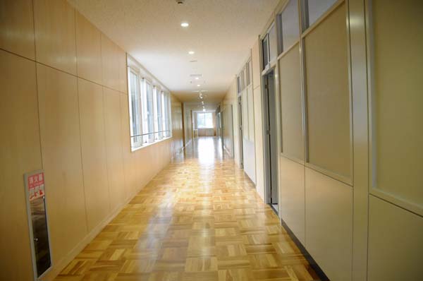 各階にトイレを設置し、1階には車椅子専用トイレ。トイレと廊下の照明にLEDを使用し、省エネルギー化を図り、教室の照明は、明るさの面から蛍光灯を使用。各教室には、50インチの液晶テレビを設置する。