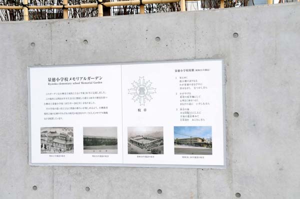 そこで、学校関係者や校友会、病院局の協議で、メモリアルガーデンを建設。同ガーデンは、量徳小学校旧校舎体育館横に位置している。