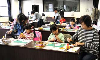 参加者は、最初に、簡単な説明を受けてから、それぞれがイメージを膨らませ、製作に取り掛かった。