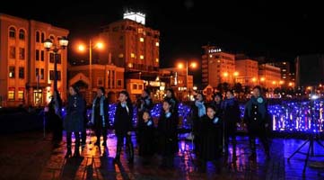 小樽商科大学の1〜4年生の7名が、ゆき物語ガールズに任命され、その内、庵彩乃さん(4年)と山本優里さん(2年)、ゴスペルを披露する浅原冨希子 with Sea of Graceの15名(子ども4名・大人11名)が、元気な声でカウントダウンに参加し、点灯式に華を添えた。