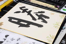 今年で5年目となるこの取り組みは、新年を迎えたことの書き初めや3年間の集大成としての意味もあり、今年1年の抱負や目標を、一文字にしたため筆文字で表現した。