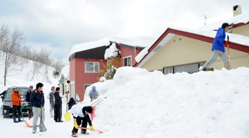 スタッフのひとりは「この降り積もった雪を見ると、ボランティアしてあげたい気持ちになる。お年寄りの方がとても喜んでくれている」と笑顔で話した。